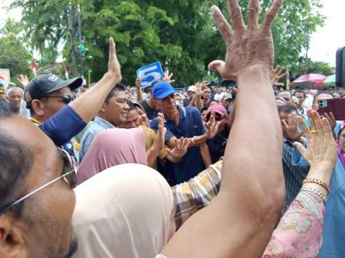 Simpatisan Rato-Ramaidan sejak pagi menunggu calon Bupati dan wakil di depan kantor Bawaslu, ist