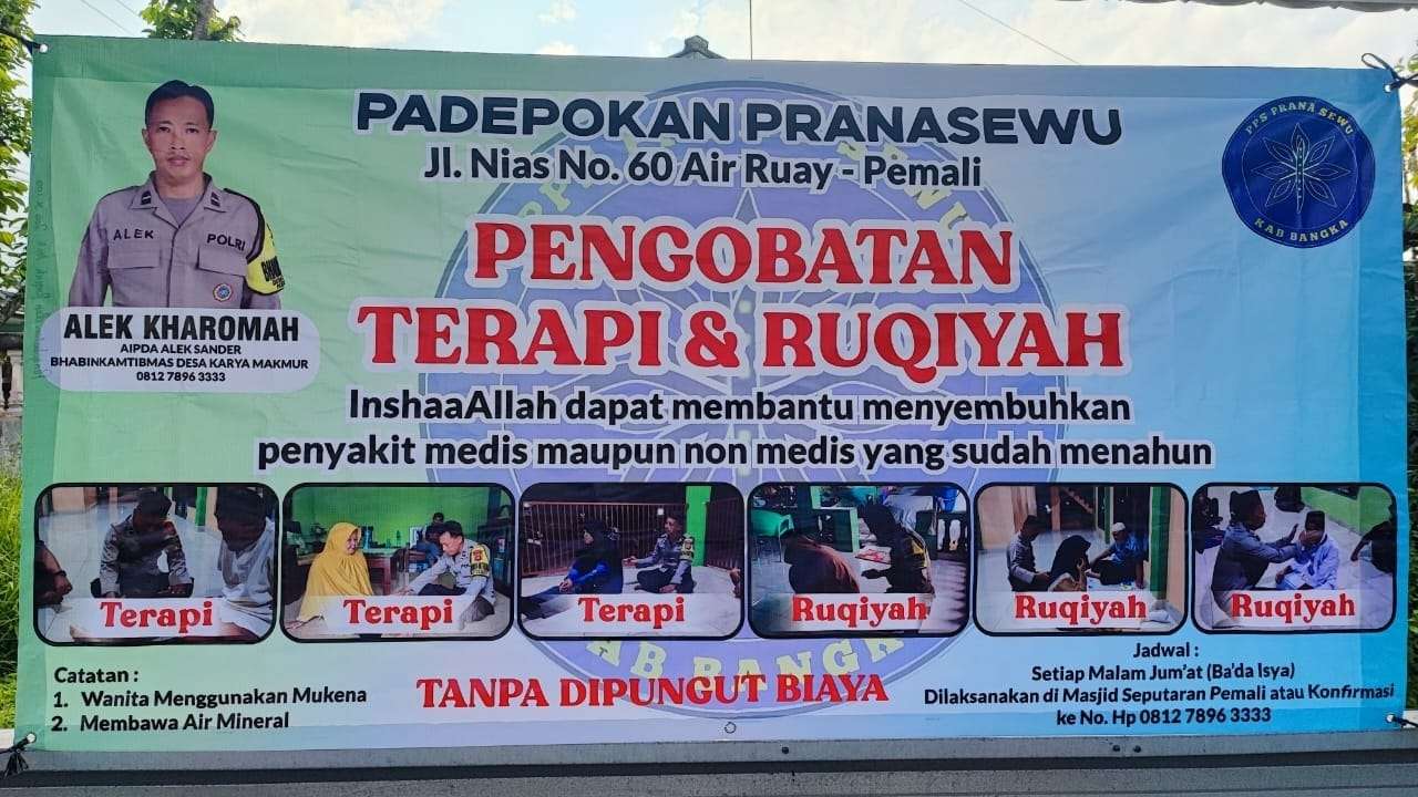 “Ruqiah sudah lama saya lakukan. Sejak 2018, kegiatan ini sudah dilaporkan ke Polda Kepulauan Bangka Belitung sebagai agenda rutin saya di Desa Karya Makmur,” kata Aipda Alek saat ditemui di sela-sela kegiatannya meruqiah warga, Minggu (12/10/2025).