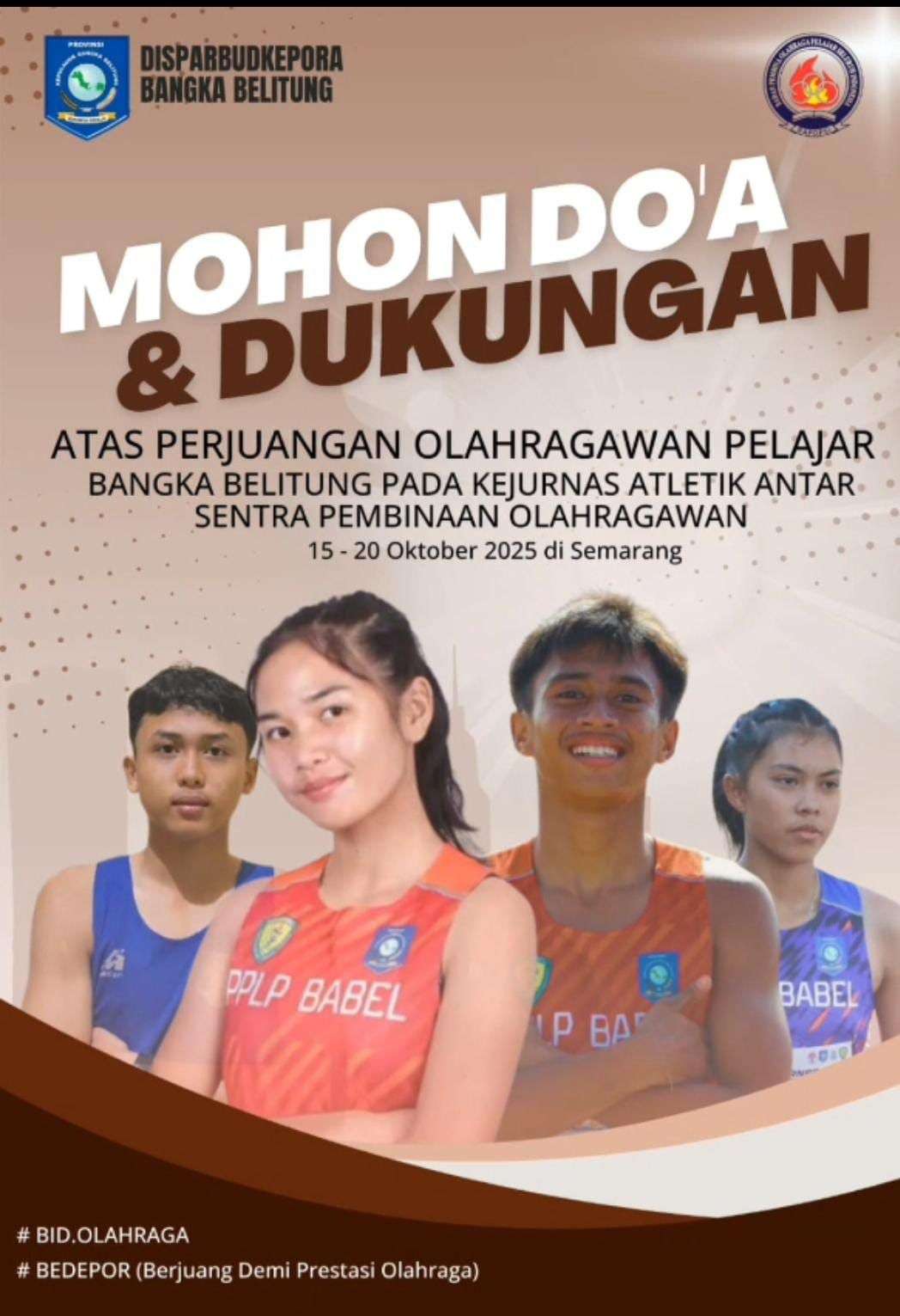 Bangka,Cmnnews.id – Atlet muda asal Bangka Belitung, Cornelia Safira atau akrab disapa Anggun, siap berlaga di ajang Kejurnas Atletik Antar Sentra Pembinaan Olahragawan yang bakal digelar di Semarang, 15–20 Oktober 2025 mendatang.