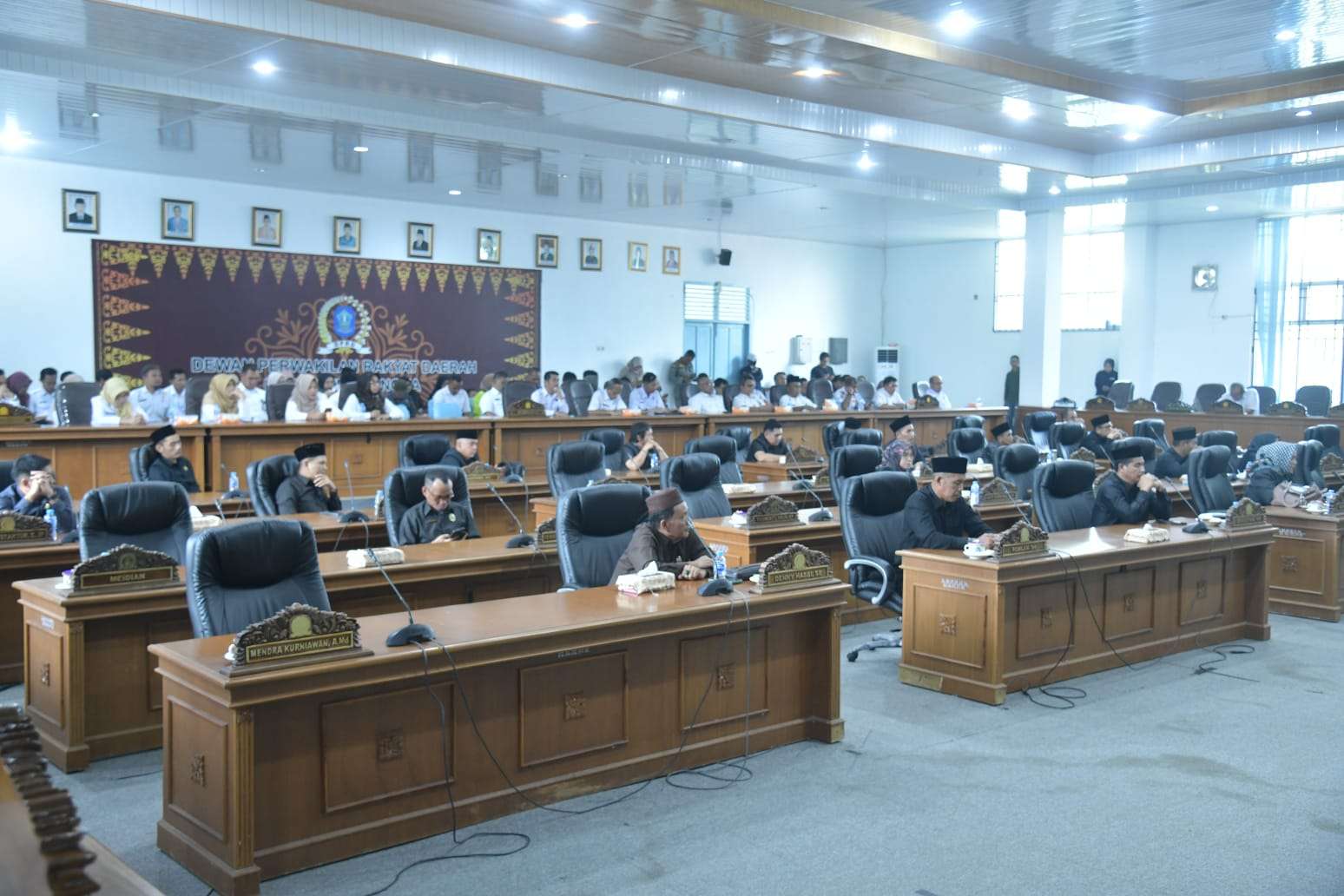 “Rapat paripurna ini dilaksanakan sesuai ketentuan Pasal 71 ayat (2) Undang-Undang Nomor 23 Tahun 2014 tentang Pemerintahan Daerah serta Pasal 21 Permendagri Nomor 19 Tahun 2024, yang mengatur bahwa kepala daerah wajib menyampaikan LKPJ kepada DPRD satu kali dalam setahun, paling lambat tiga bulan setelah tahun anggaran berakhir,” ujar Jumadi.