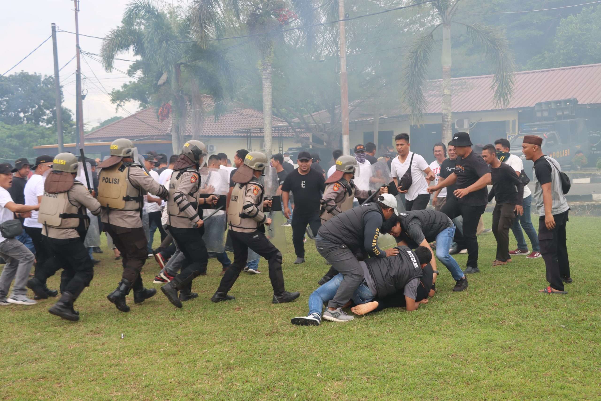 Pasukan Dalmas pun diturunkan. Gas air mata ditembakkan, namun massa tetap bertahan. Barulah setelah sejumlah provokator diamankan oleh Tim Opsnal dan mobil water canon dikerahkan, situasi mulai terkendali.