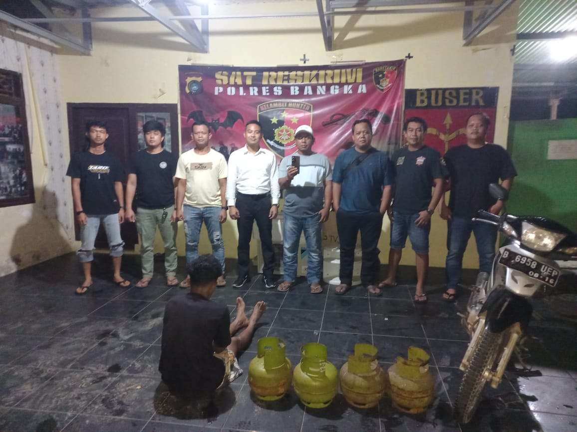 Polisi menyita sejumlah barang bukti, termasuk motor Honda Supra silver-hitam, HP Vivo Y18, dan empat tabung gas 3 kg.